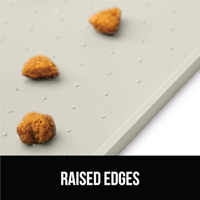 GORILLA GRIP 100% Waterproof Raised Edge BPA Free Silicone Pet Feeding Mat, Dog Cat Food Mats Contain Spills Protects Floors, Placemats for Cats and Dogs Water Bowl, Pets Accessories 23x15 Cream
