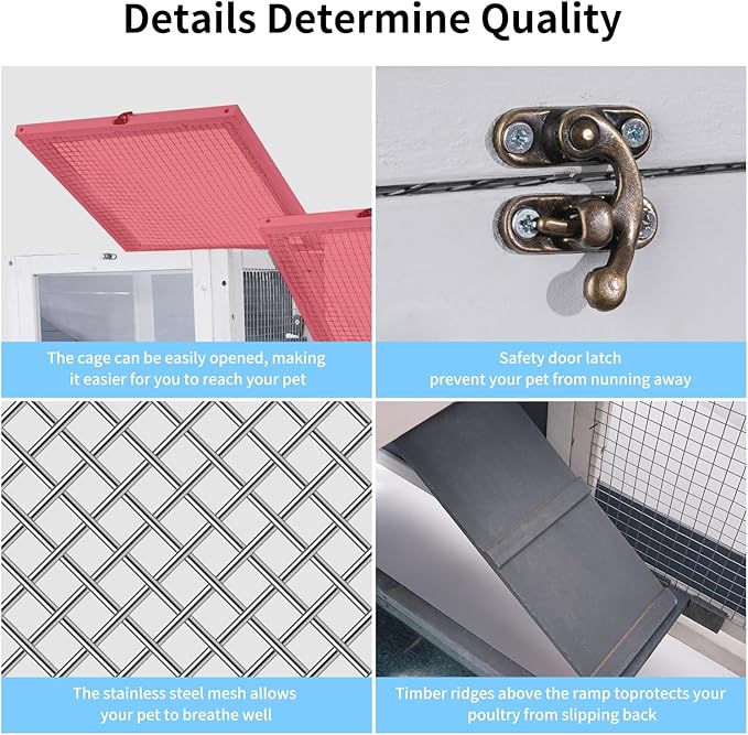 - 【Stable & Durable】100% made of 10mm Finnish spruce panels(NOT CEDAR), with a water-based painting finish, thicker than others guinea pig cages, ensures good sturdiness to use. The wire roof with UV proof panel protect your pets against the sun, rain and snow.