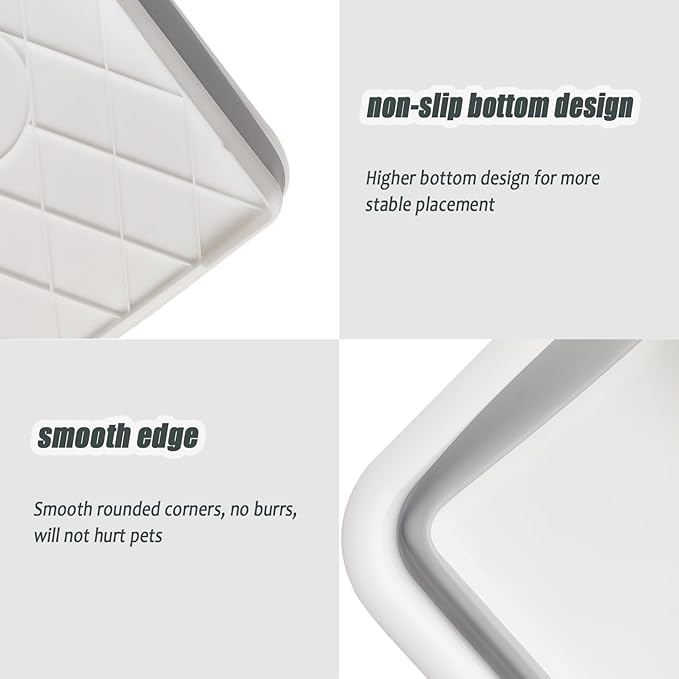 - 【Base Stability】: semi-enclosed folding kitten toilet has a raised bottom design, stable and durable, not easy to slide, so cats can safely go to the bathroom in it.
