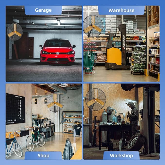 - VERSATILE APPLICATIONS - This fan is ideal for workshops, factories, warehouses, stores, classrooms, garages, offices, and other areas where there is limited floor and table space.