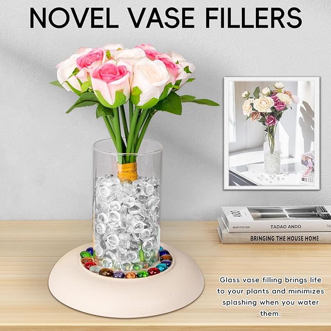 - 【Widely Applied】These flat marbles can serve as vase fillers for centerpieces,decorative accents for pool or landscape bottoms, home décor, photography backdrops, gardens, weddings and parties, fire pit glass rocks, as well as glass beads for crafts.