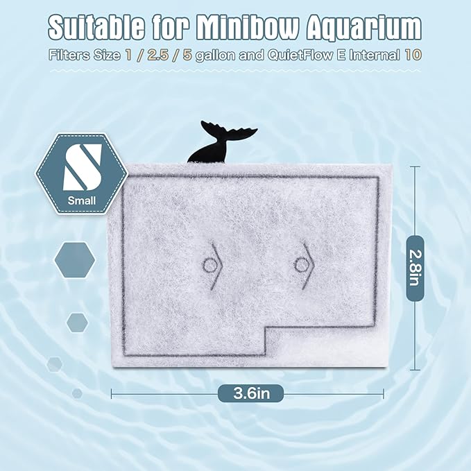 - Perfect Compatibility - Our small filter cartridges is perfect compatible for Minibow Aquarium Filters Size 1 / 2.5 / 5 gallon and QuietFlow E Internal 10 on the market. With this aquarium filter cartridge, you can keep the water healthy and clean for your fishes all the time.