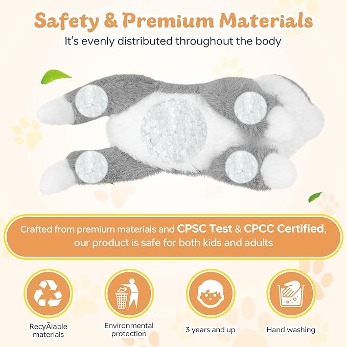 • 【Safe Material】Safety is our top priority. Our weighted plush toys are made with safe materials and cotton that have been tested by a certified lab. Rest assured that you are bringing home a safe and reliable companion