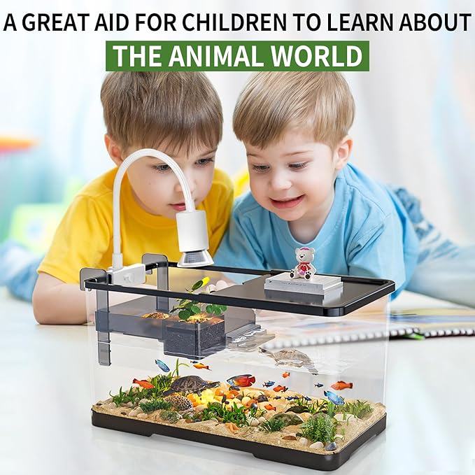 - 【Complete Small Reptile Starter Kit】Includes: 1* tank +1 lid, 1* light +1* UVA/UVB light bulb, 1* filter,1*Adjustable climbing platform, 3* decorative plants +1* stone pack +1*filter ball pack; Including everything you need