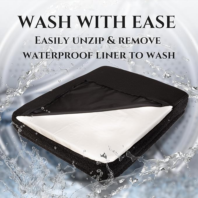 - 𝐖𝐚𝐭𝐞𝐫𝐩𝐫𝐨𝐨𝐟 𝐚𝐧𝐝 𝐄𝐚𝐬𝐲 𝐭𝐨 𝐂𝐚𝐫𝐞 𝐋𝐢𝐧𝐞𝐫: Our plush dog bed is thoughtfully designed with a machine-washable cover that is securely encased in a sturdy, waterproof liner. This innovative construction offers comprehensive protection for the plush foam core, guarding against spills, accidental messes, and moisture damage, ensuring that your pet's sleeping environment remains clean and inviting.