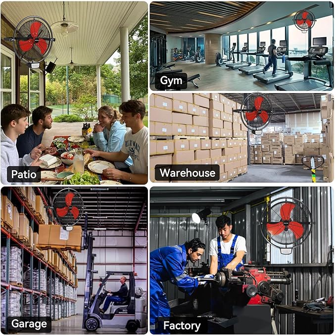 - Powerful Airflow & Wide Coverage: Fanniverse 20" wall-mounted oscillating fan delivers up to 5200 CFM of airflow with a reach of 40 ft. Features 80° oscillation and 300° vertical tilt for wide-area coverage—ideal for indoors, garages, patios, workshops, and warehouses.