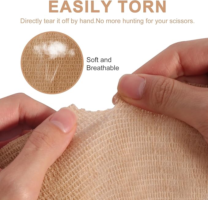 - 【No Residue & Effortless Application】Unlike ordinary tapes, this self-adhesive bandage sticks only to itself, not skin or hair. Easily tear b hand without scissors—perfect for quick fixes during sports, workouts, or pet emergencies. No pins or clips needed!