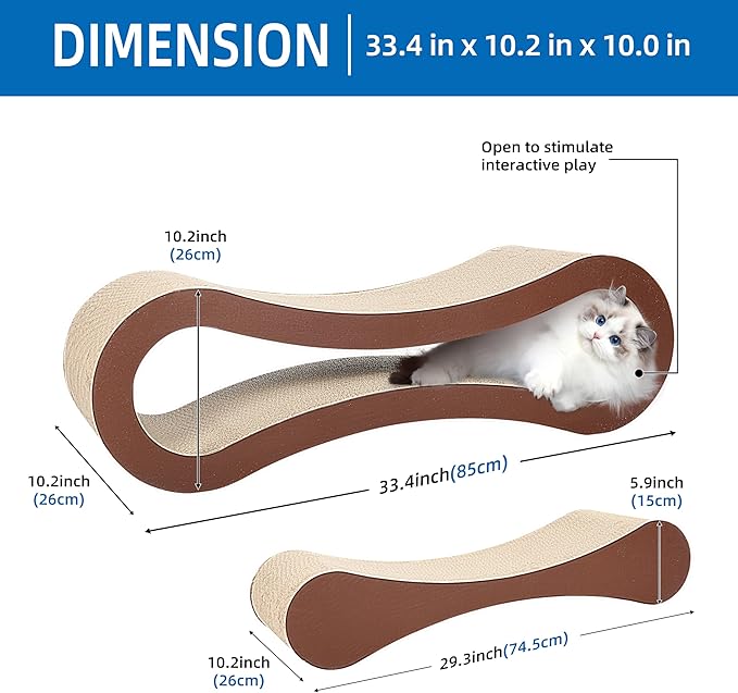 - Unique Infinity Shape: Features a distinctive infinity shape which makes a cozy cat bed or lounger. The shape enhances the visual appeal of the cat scratcher.