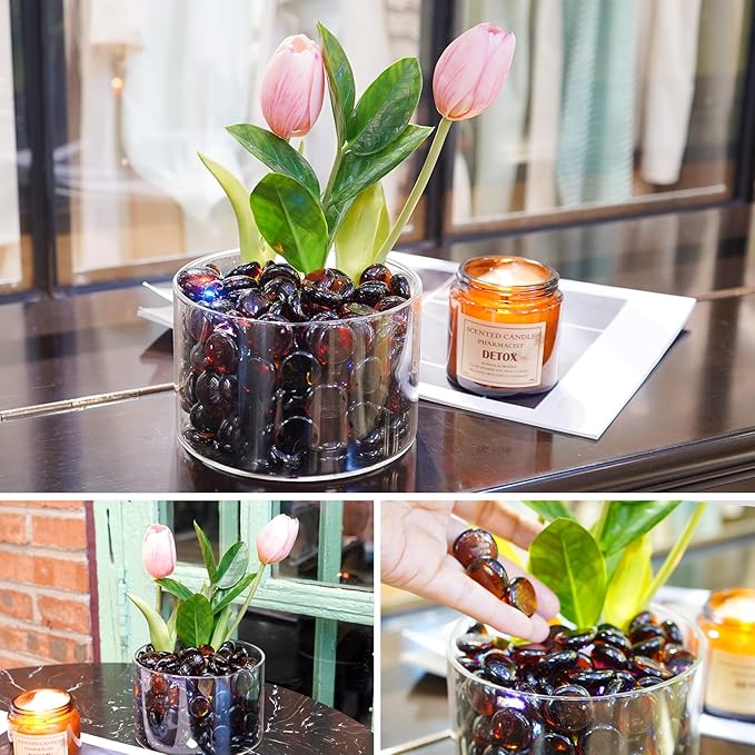 - Multi-Purpose Decor : Perfect as vase filler for weddings, events, fish tank gravel for aquarium landscapes, table centerpiece accents, or DIY art crafts, Resin jewelry, mosaics, epoxy coasters, mixed-media sculptures, candle holder bases.