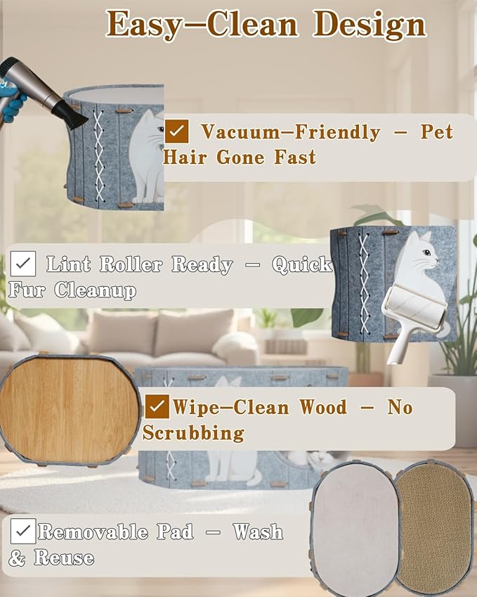 - SPACIOUS 2-IN-1 CAT HOUSE FOR MULTI-CAT HOMES:Give your feline family room to stretch, nap, or play. This double-decker felt cat house holds up to 88 lbs, offering cozy hideaways and playful zones for large cats or two kitties—no more turf wars, just peaceful lounging.