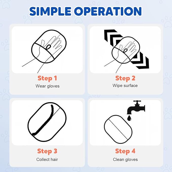 - Efficient Hair Removal for Multiple Surfaces: Remove pet fur from sofas, carpets, clothes, and car seats using the reusable hair remover glove. Its double-sided grooming design covers large areas quickly, making cleanup of cat and dog hair fast and simple for any home or car environment