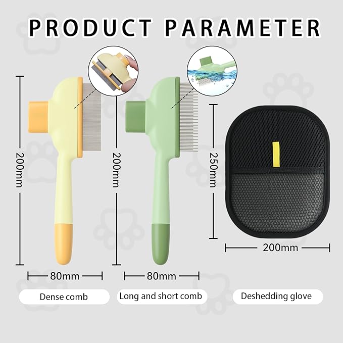 - 【Gentle Yet Effective】- Designed for sensitive skin, the soft bristles of the grooming comb and flexible pet hair removal gloves efficiently remove loose fur, tangles, and mats without causing discomfort, making it ideal for both long-haired and short-haired pets