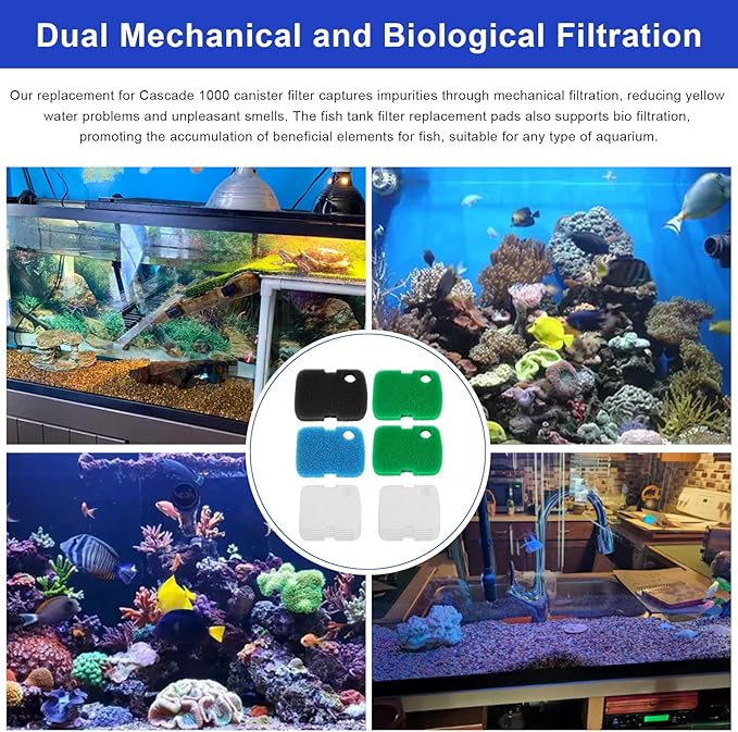 - 【Dual Mechanical and Biological Filtration】Our replacement for penn plax cascade canister filter 1000 captures impurities through mechanical filtration, reducing yellow water problems and unpleasant smells. These fish tank filter replacement pads also supports bio filtration, promoting the accumulation of beneficial elements for fish, suitable for any type of aquarium.